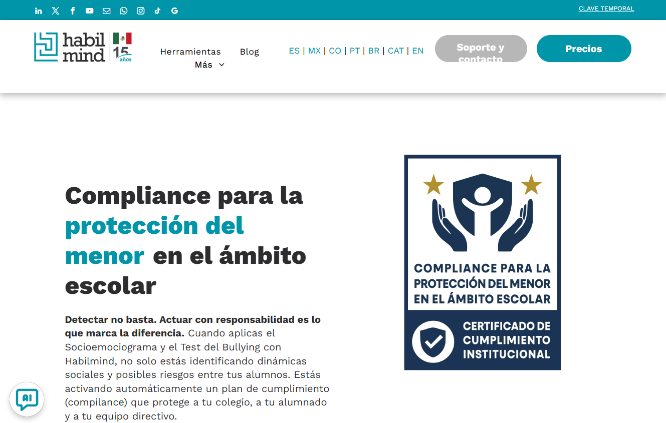 Los siguientes servicios están incluidos por defecto en la plataforma Habilmind en su versión premium. Si tu colegio no los tiene todavía activos, puedes comunicarte con tu interlocutor en Habilmind o bien, escribir a info@habilmind.com para su activación.